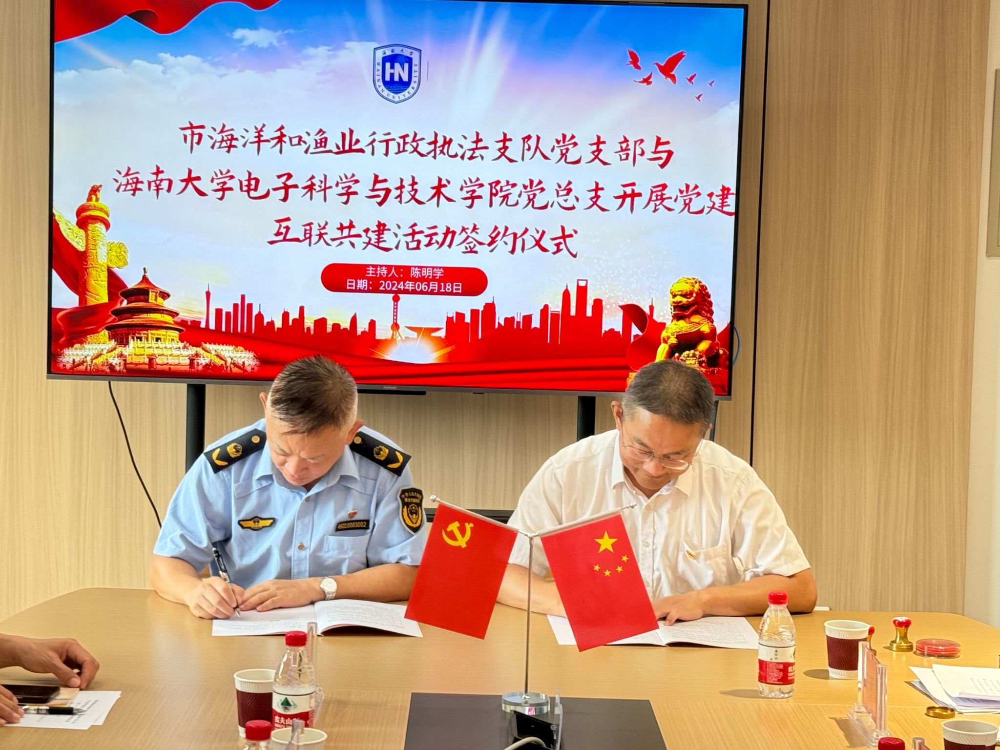 6月18日上午,海口市综合行政执法局海洋和渔业行政执法支队党支部与beat365英国官方网站党总支党建互联共建签约仪式在beat365英国官方网站信息科技大楼507会议室举行,市海洋和渔业行政执法支队党支部书记、政委陈明学;beat365英国官方网站党总支书记林华出席会议,会议由陈明学主持。