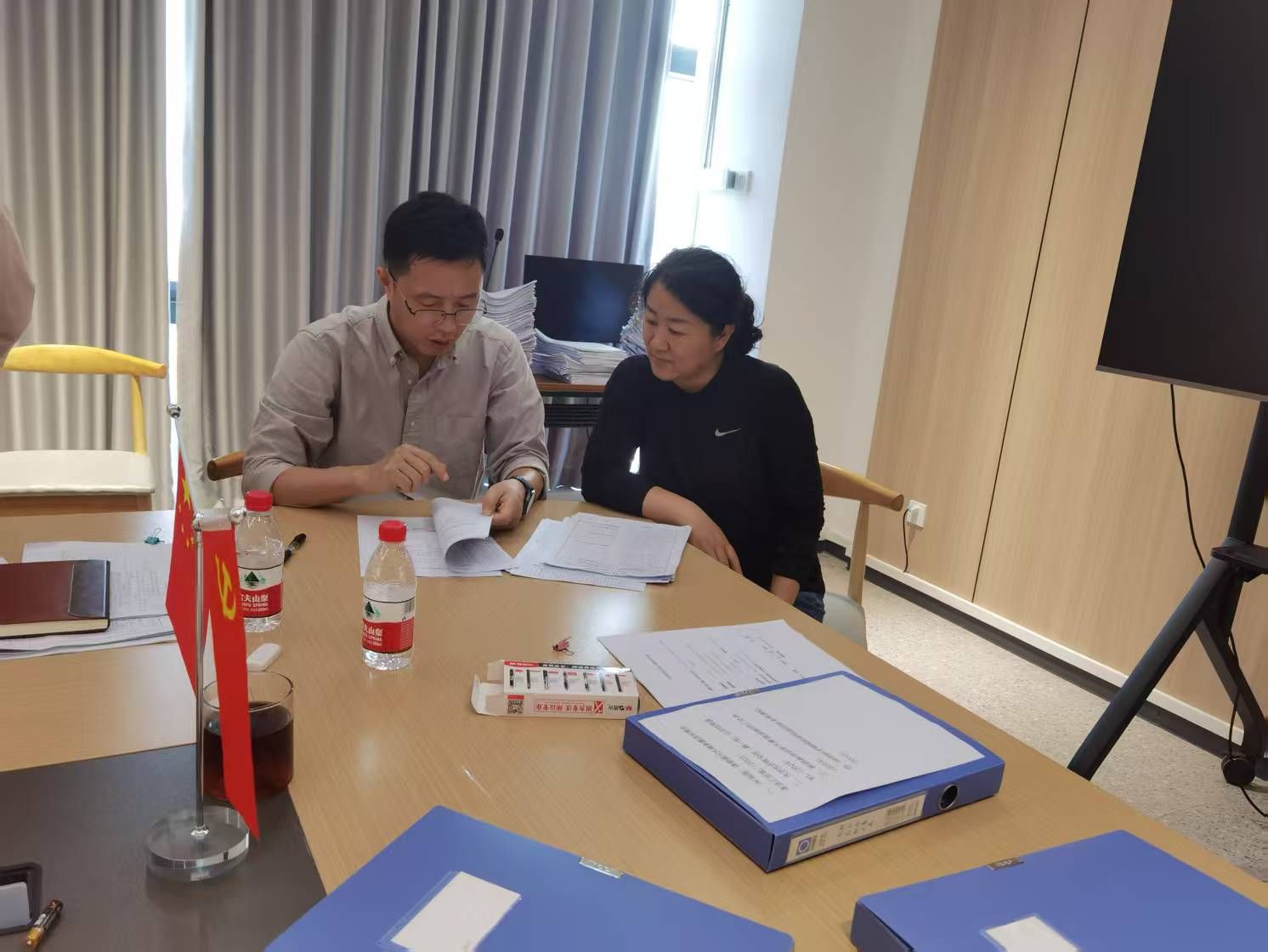 2024年4月8日下午14:20—16:00,第三次检查工作在学院507会议室进行,通过对所有的资料的全面复审,针对个别教师的资料存在的问题,现场通知任课老师修正。
