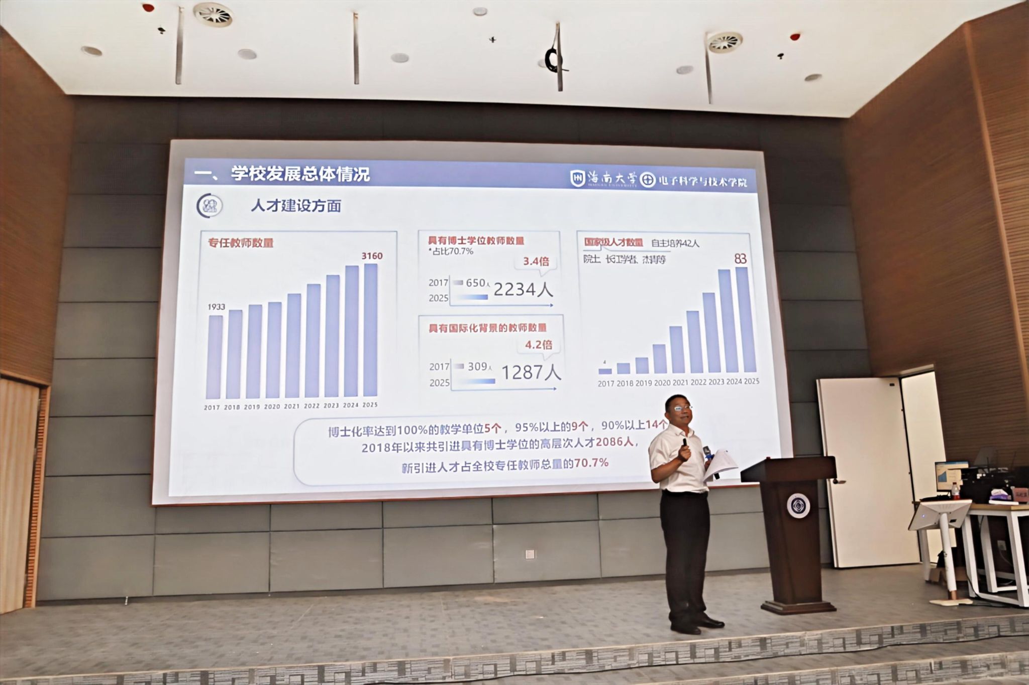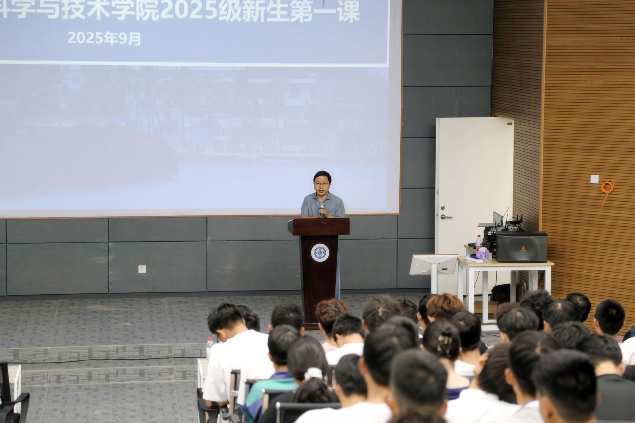 9月21日下午14:30,beat365英国官方网站2025级新生开学典礼在信息科技大楼二楼报告厅隆重举行。学院院长刘马良、党委书记林华、副院长王冠军、副院长李娜、教师代表王微微教授、简明朝博士、王诗兆博士、何政博士、夏迎军博士、徐鹏博士、杨德坤博士、吴迪博士、教研办、综合办、老生代表乔馨驰、新生代表张广宇和2025级全体新生共同参会。学院邀请海德书院韩胜丁书记、南海书院王一凡副书记致辞,中国南海研究院处长林勇新做关于南海形势的报告。会议由副院长王冠军主持。