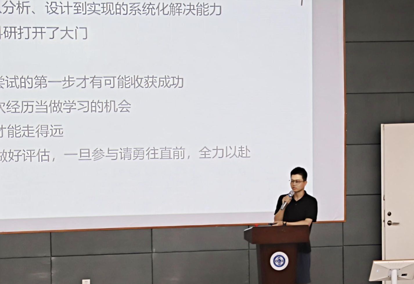 乔馨驰同学作为老生代表,分享了专业学习路径,强调掌握数字电路、模拟电路、电磁场与信号处理等核心课程,提倡学用结合,于实践中锤炼代码调试与硬件开发能力。