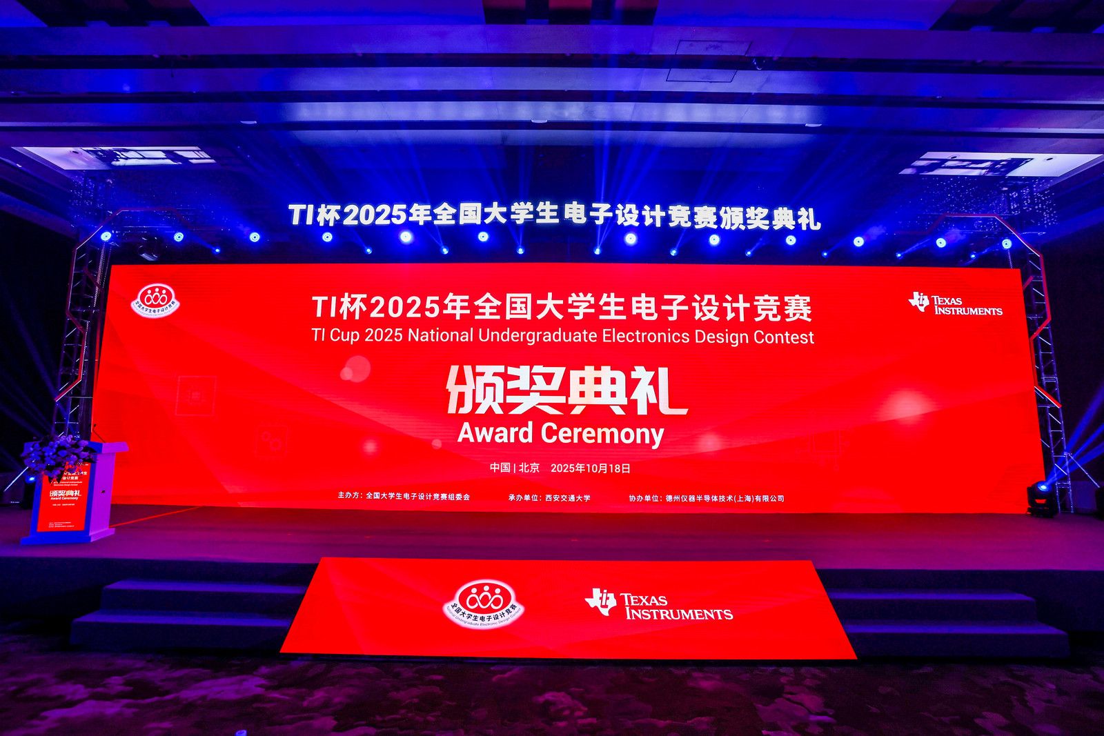 本站讯 (通讯员 曾旭杰)10月18日上午,2025年全国大学生电子设计竞赛(TI杯)颁奖典礼在北京举行。beat365官网首次出征赛事斩获佳绩,一支队获全国大学生电子设计竞赛(本科组)全国二等奖,并代表海南省受邀参加颁奖典礼。