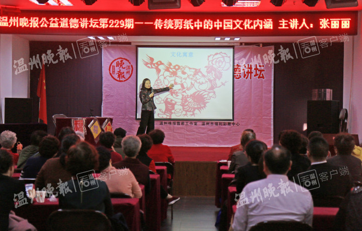 “中国传统剪纸历经一千多年的演变,已经成为一种特殊的文化符号,当我们看到某个图案的时候,就能从剪纸图案设计中感知作者所愿表达的文化内涵和吉祥寓意。”12月1日,在市区庆年坊文化家园,买球的app排行榜前十名推荐副教授、瓯海区非遗剪纸项目代表性传承人张丽丽做客本期温州晚报公益道德讲坛时说道。