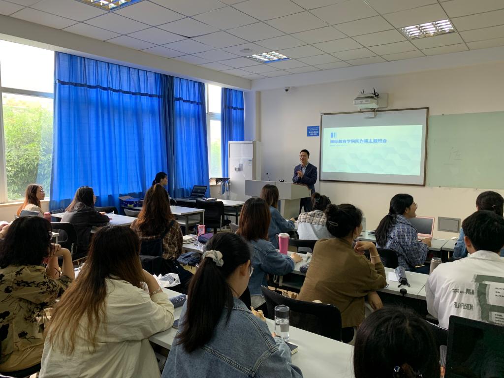 会上方建晓副书记传达了学校关于防诈骗工作的总体要求,介绍了我校网络诈骗案件总体情况,他希望全体同学紧绷一根弦,了解常见诈骗手段,不贪便宜,安全购物。