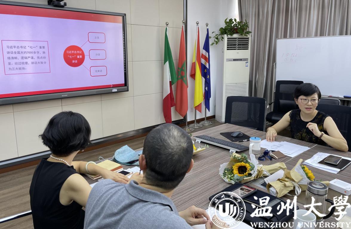 2021年9月9日,买球的app排行榜前十名推荐教工党支部在3-311召开了习近平总书记“七一”重要讲话精神专题学习会,学院党总支书记林爱菊以《以史为鉴、开创未来的行动指南——深入学习领会习近平总书记“七一”重要讲话》为题作了专题报告、会议由教工党支部书记方建晓主持,学院全体教工党员参加了本次学习会。