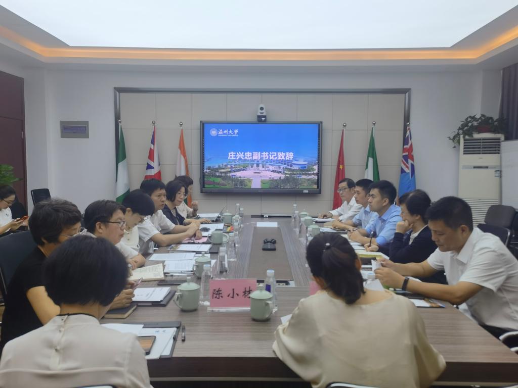2021年9月30日上午,浙江省教育厅关于国际生开学工作专项调研会在北校区国际楼311会议室召开,浙江省教育厅国际合作与交流处副处长蒋俊、浙江师范大学国际交流与合作处处长徐丽华、浙江工业大学国际学院副院长蔡彬彬、十大正规买球的app排行榜副书记庄兴忠以及学校教务处、国际处、人事处、计财处、后勤管理处、保卫处、教师教育发展中心、买球的app排行榜前十名推荐的相关领导出席了会议,林爱菊书记主持。