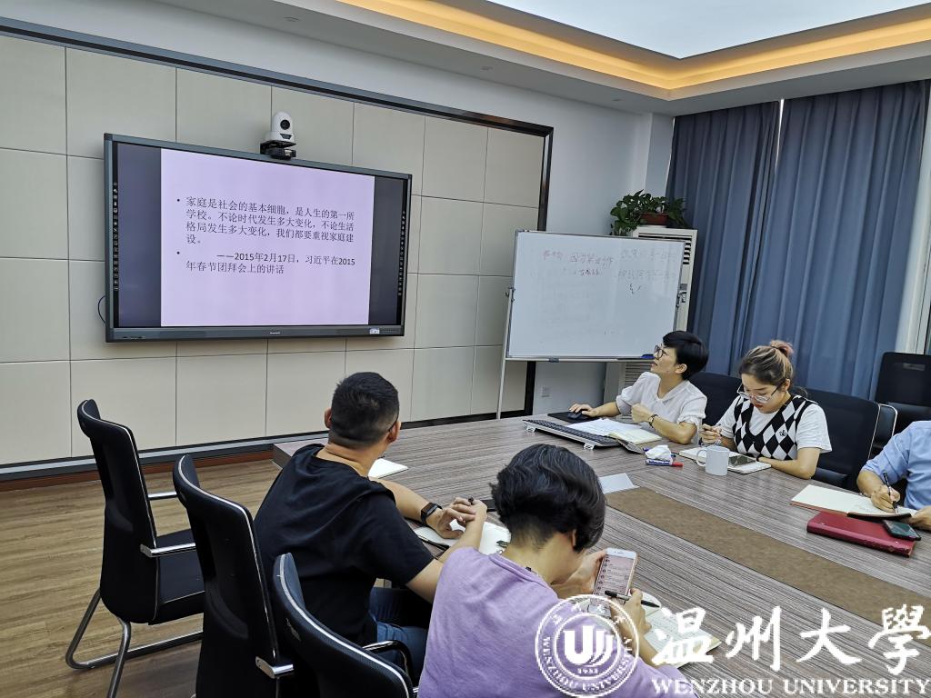 10月13中午,买球的app排行榜前十名推荐召开学院二级理论学习中心组专题学习会。学院党总支书记林爱菊带领大家学习习近平总书记关于注重家庭家教家风建设论述。
