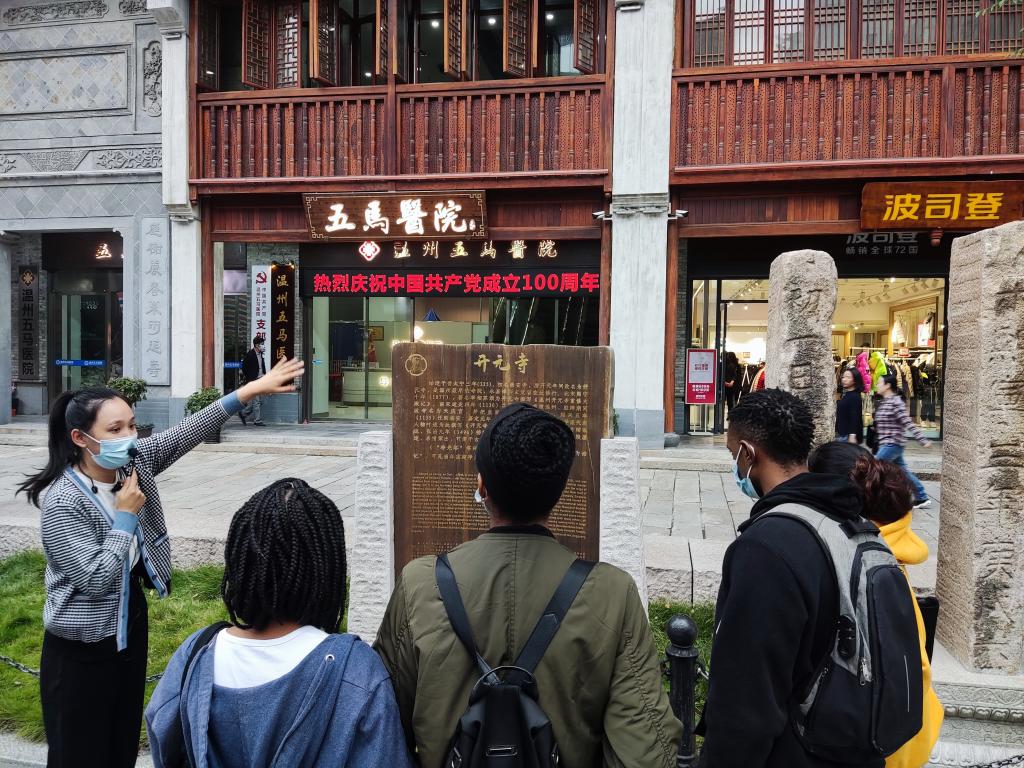 2021年11月3日,在买球的app排行榜前十名推荐叶苗院长的组织下,3名21级汉硕学生带领买球的app排行榜前十名推荐多名留学生,来到了温州市五马街区开展以“知行温州”为主题的研学活动。