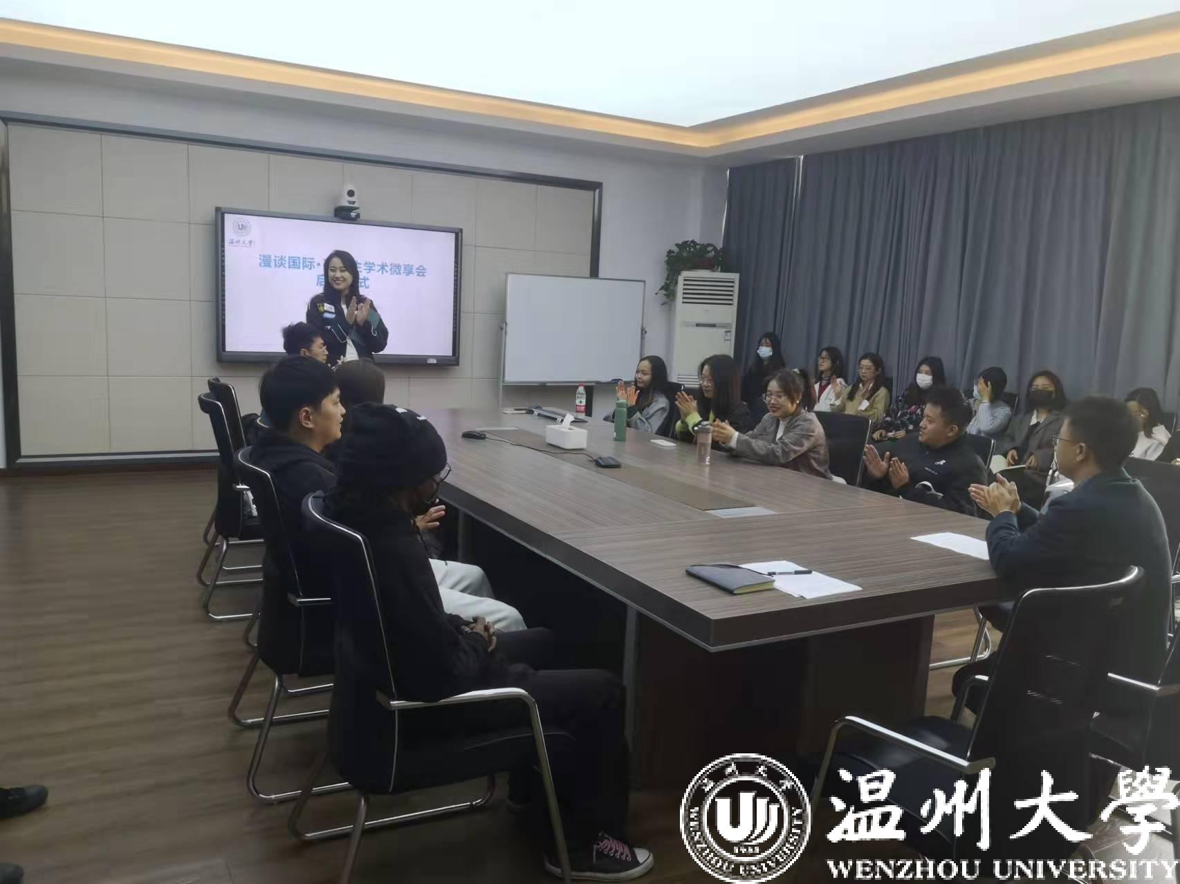 为鼓励买球官网研究生学术创新,活跃学术交流氛围,弘扬求学问是、敢为人先之校训精神,培育研究生勇于创新、克服恐惧、善于分享之学术精神。买球的app排行榜前十名推荐大胆探索,决定举办漫谈国际·研究生学术微享会,从而为研究生的学术交流、经验分享提供一个宽松、自由、平等的交流平台。11月12日下午,学术微享会启动仪式在311会议室成功举行,学院党总支副书记方建晓、辅导员吴铨铨、全体汉硕研究生参加了本次启动仪式。