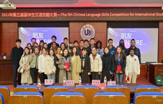 汉语是桥,文化是家。2021年12月8日下午4:00,“朋友,ON FIRE!”第五届留学生汉语技能大赛于买球的app排行榜前十名推荐203报告厅隆重举行。经过一轮激烈角逐,最终进入决赛选手共13位,其中语言类11位,非语言类2位。各国选手通过配音、朗诵、唱歌、书法、手工艺的形式,展现出自己的优秀风采和精神面貌。买球的app排行榜前十名推荐党总支书记林爱菊老师,汉语国际教育教研室阚文文老师、徐丽丽老师和李晶老师出席并参加本场活动,现场吸引了众多中外师生共同观看,享受这一文化交流的国际盛宴。