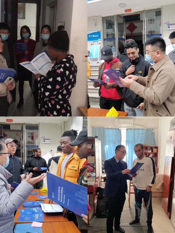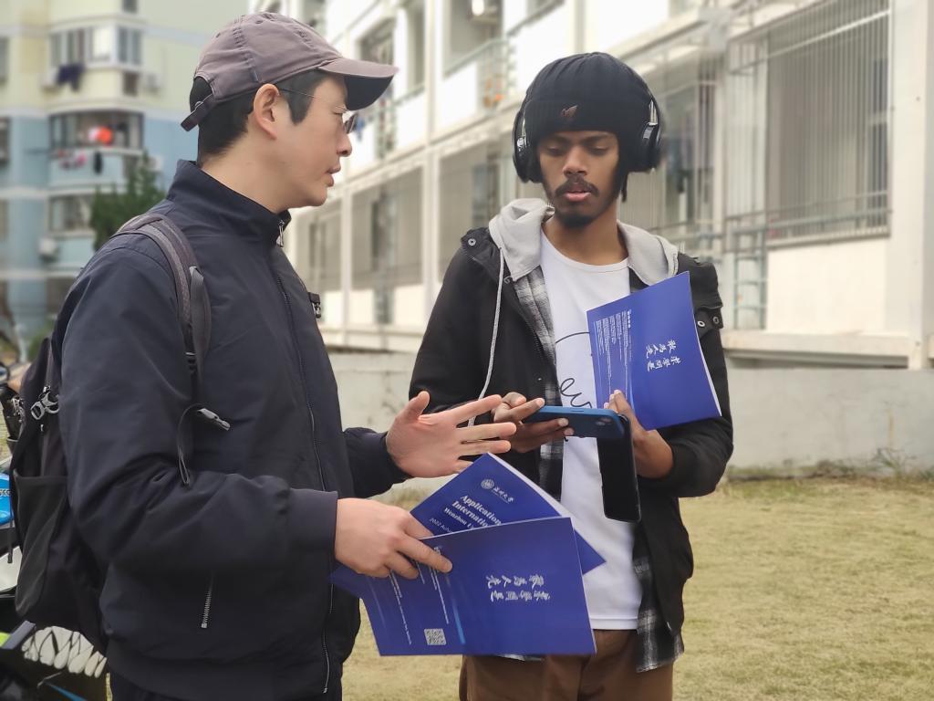 党员们手里拿着《Application Guide for Inernational Students Wenzhou University》小册子,深入国际生寝室,向国际生详细介绍了十大正规买球的app排行榜国际生的招生政策,涉及硕士项目、本科项目的招生情况以及相关学院、专业名称、学制、授课语言等;讲解了国际生就读的费用情况,包括学费、申请费、住宿费、体检费、保险费、居留许可费;告知了中国政府奖学金、国际中文教师奖学金、浙江省政府奖学金、十大正规买球的app排行榜国际学生校长奖学金等奖学金情况;耐心传达了资格申请的申请方式,申请时间以及申请所需材料。