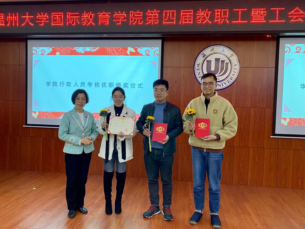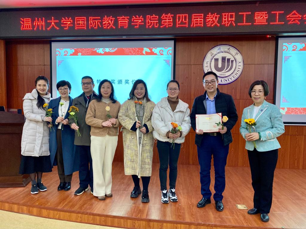 会议举行了二个奖项的颁奖。获买球的app排行榜前十名推荐2021年度“院长特别奖”的为汉语国际教育专硕建设团队;获学院行政人员2021年度考核前三名为李舒琦、吴铨铨、钱江潮。