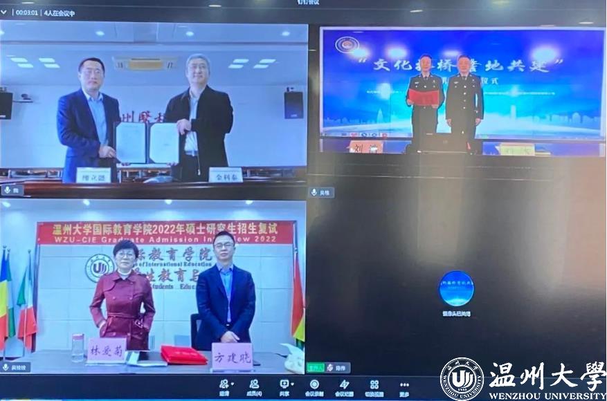 3月28日下午,我校与温州机场出入境边防检查站、温州医科大学举行“文化搭桥、警地共建”协作机制线上签订仪式。温州机场出入境边防检查站站长刘浩、副站长刘冰,买球的app排行榜前十名推荐党总支书记林爱菊、副书记方建晓,温州医科大学买球的app排行榜前十名推荐院长金利泰、副院长缪立懿参加签约仪式。