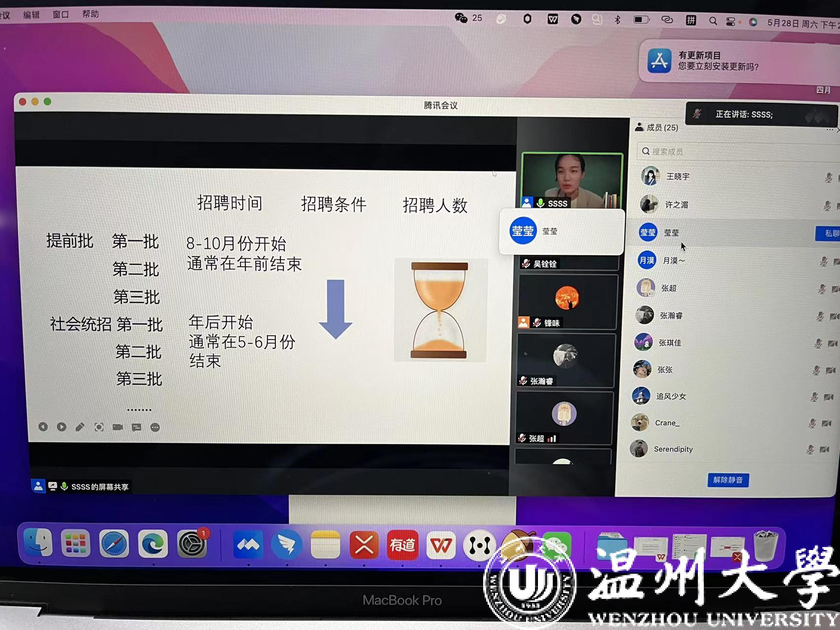 吴老师介绍“朋辈引领计划”的建设初衷及未来规划,他希望该项目能成为汉语国际教育专业学生了解本专业求职方向、职业发展及专业学习经验的有效途径。他希望全体学生能珍惜每一次向优秀前辈学习的机会,并以此确立自己的职业生涯规划。