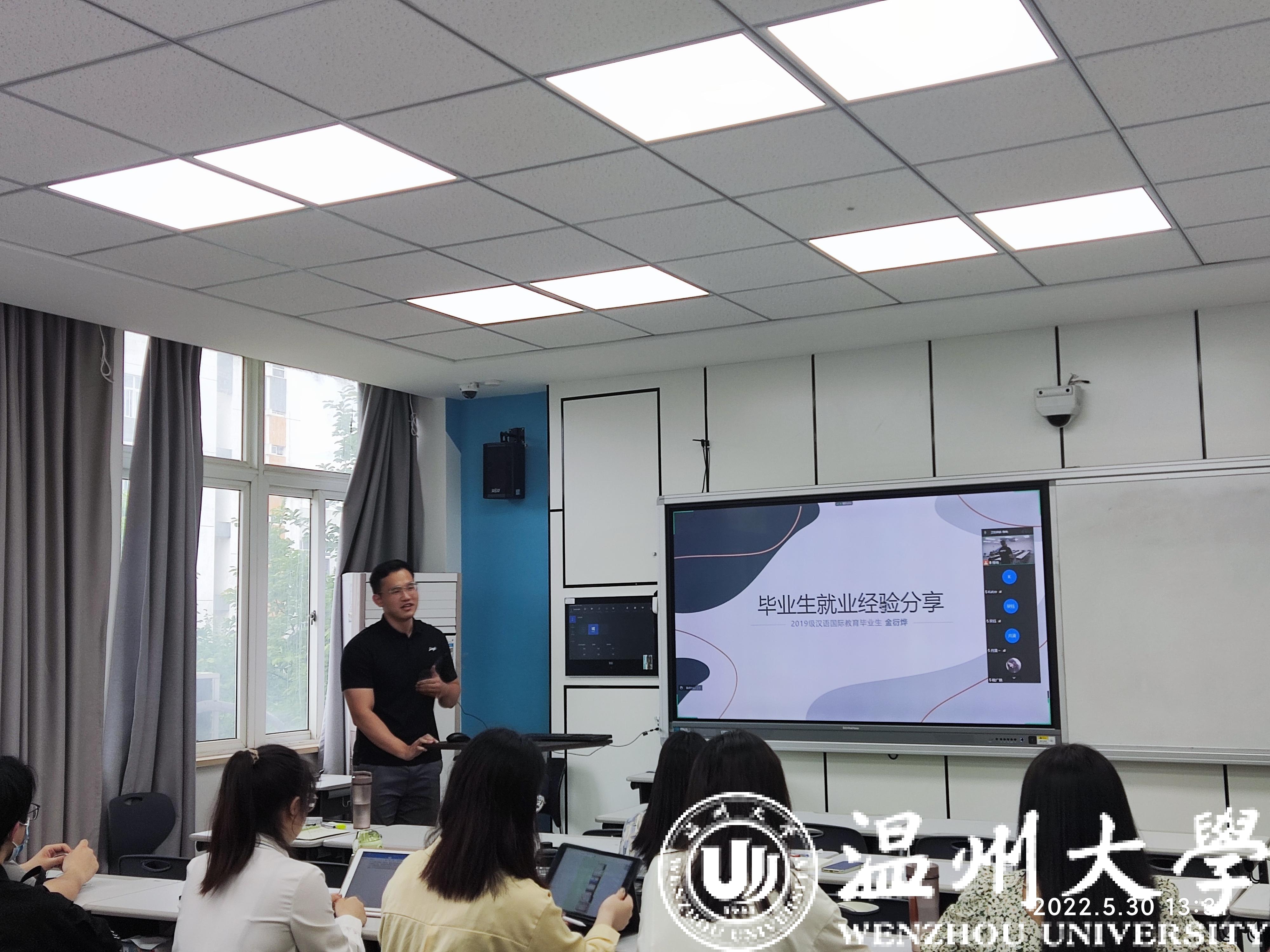 为提升国际中文教育专业学生就业能力,加强对研究生就业指导与帮扶,2022年5月30日下午,买球的app排行榜前十名推荐第二期“朋辈引领计划”讲座以线上线下相结合方式成功举办。2019级优秀毕业生金衍烨应邀为全体研究生作高校行政岗求职经验分享。辅导员吴铨铨、20级、21级研究生参加了本次讲座。