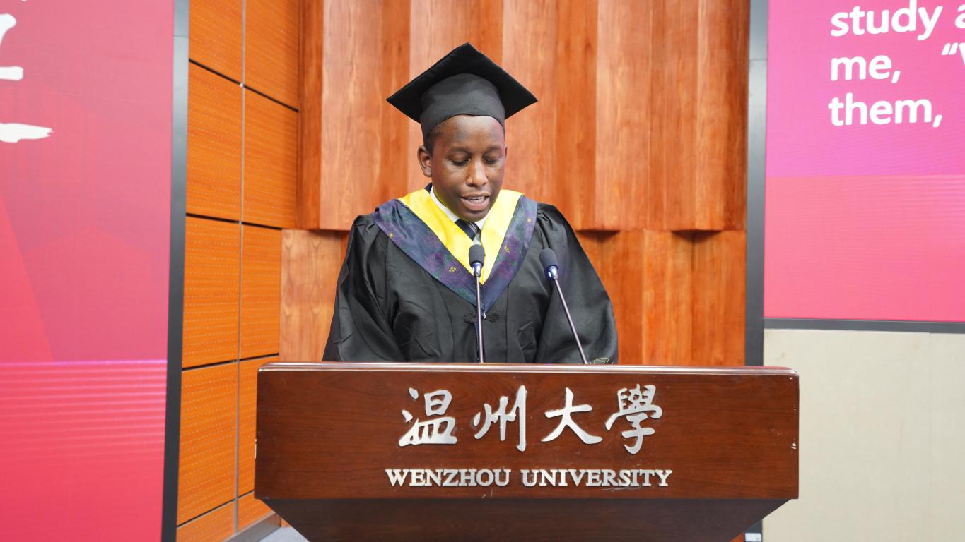 来自坦桑尼亚的2018级算机科学与技术专业学生陆求是代表本科生发言,他说,“不管哪种选择,我们都会秉承温大求学问是,敢为人先的精神,做好母校的大使,坚持为两国的友好发展而努力。”随后,研究生代表、来自意大利的2019级应用经济学专业学生艾兰,从意大利发来祝福视频,表达了对母校十大正规买球的app排行榜的感激之情。