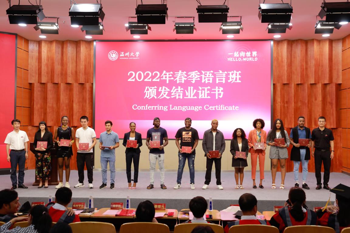 6月22日,我校2022年国际学生毕业典礼暨学位授予仪式在南校区岩松堂隆重举行,与会嘉宾有副校长蔡曙光,来自瓯海区出入境管理大队、茶山派出所、温州市文化馆等的校外嘉宾,学校相关部门负责人、二级培养学院领导和专员、买球的app排行榜前十名推荐全体教师。因疫情原因,本次毕业典礼实行线上线下相结合的方式,境内外毕业生及家长、校友齐聚云端,共同庆祝2022届国际学生圆满完成学业。