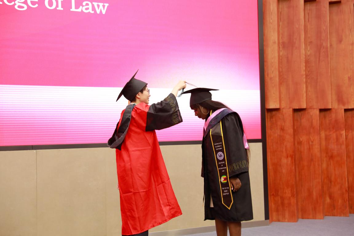 教师代表徐正博士向国际毕业生表示最热烈的祝贺,并为学生们送上谆谆嘱托。希望同学们永远不要失去学习的意志,永远不要失去战胜未来挑战的内在力量。