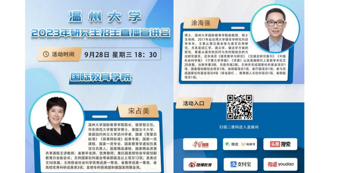 9月28日下午18:30,买球官网成功地举行了2023年研究生招生直播宣讲会。买球的app排行榜前十名推荐院长(留管部主任)宋占美、硕士生导师涂海强出席了本次宣讲会。宣讲会采用线上直播方式进行,直播活动通过中国教育在线考研频道、掌上考研公众号、全国研究生招生线上咨询群等中国教育在线官方平台全面推广,吸引了大量考研学子和家长观看,为买球官网2023年汉硕招生工作奠定了良好基础。