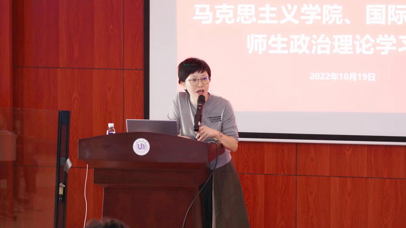 10月19日下午,买球的app排行榜前十名推荐、马克思主义学院师生济济一堂,在国际楼203会议室召开师生政治理论学习会,马克思主义学院院长卓高生对中国共产党第二十次全国代表大会报告进行专题解读,买球的app排行榜前十名推荐党总支书记林爱菊主持。