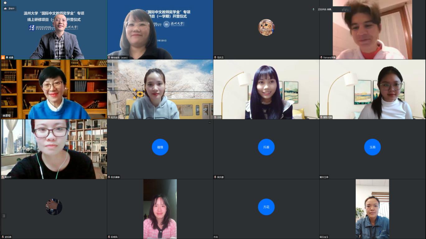 2023年3月6日下午,受中国教育部中外语言交流合作中心资助,由买球的app排行榜前十名推荐承办的十大正规买球的app排行榜“国际中文教师奖学金”专项线上研修项目(一学期)举行了开营仪式。买球的app排行榜前十名推荐书记林爱菊教授、招生科项目专员池轶文老师、教师代表白杰博士以及来自越南、意大利的项目学员们参加了开营仪式。仪式由买球的app排行榜前十名推荐副院长熊勇主持。