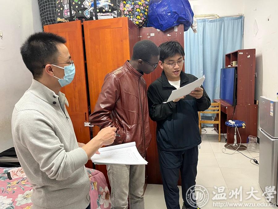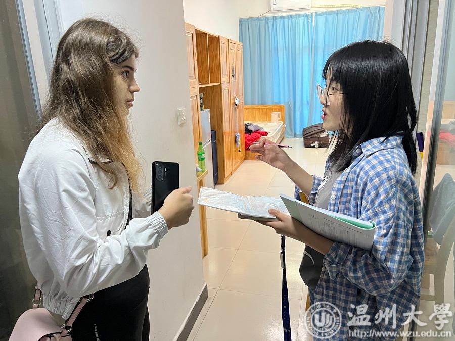 5月11日下午,方建晓书记带领全体辅导员一行深入各个留学生宿舍楼,逐寝室进行检查,重点关注寝室的卫生、安全、文明等方面。在检查过程中,方建晓书记与留学生亲切交流,了解他们的学习和生活情况,询问他们是否有困难和需求,并对他们在寝室内外的表现给予表扬或批评。方建晓书记还向留学生强调了寝室安全、卫生、文明的重要性,要求他们遵守校纪校规和寝室公约,不使用违规电器,不私拉乱接电线,不在寝室吸烟、饮酒、打架、赌博等,不留宿外来人员,不夜不归宿等。同时,辅导员们也鼓励留学生积极参与校庆文化活动,感受学校的历史和新时代的发展变化,增进对中华文化的了解和认同。