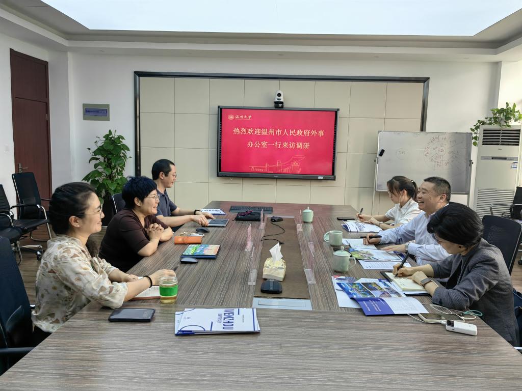 5月23日,温州市人民政府外事办公室党组成员、二级调研员陈进、对外交流处副处长叶瑶及国际交流中心主任王小倩一行来买球官网调研指导工作。学院院长宋占美、副院长熊勇和吴之欧出席了调研会。