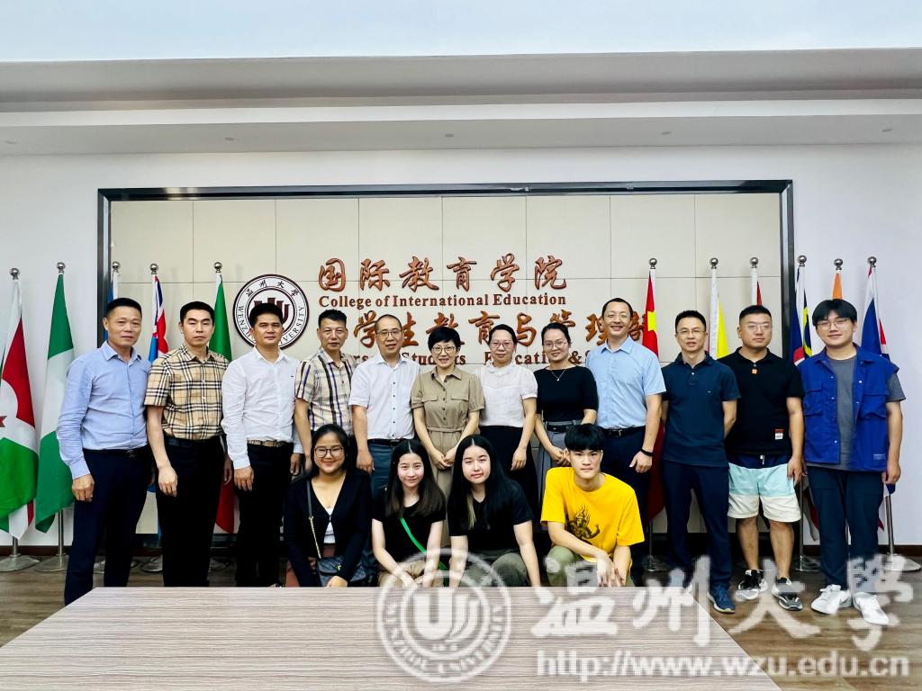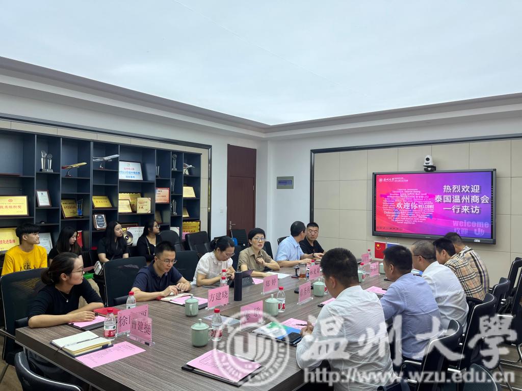 2023年7月14日,泰国温州商会会长郑炳克、常务副会长薛圣萍、章圣利、会务顾问沈高良、陈敏一行来院交流洽谈。国际交流与合作处副处长郑婷、买球的app排行榜前十名推荐党总支书记林爱菊、副书记方建晓、汉语国际教育教研室主任徐丽丽及相关科室老师、泰国“腾飞班”学生代表参加交流会,学院副院长熊勇主持会议。