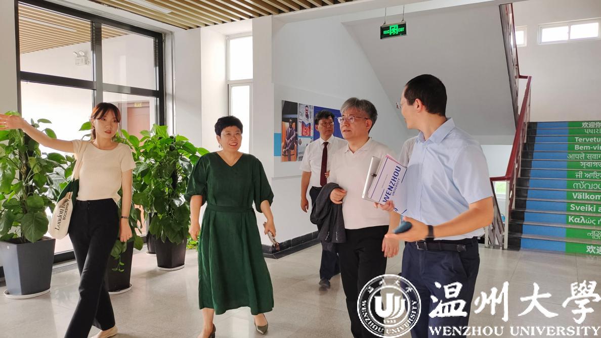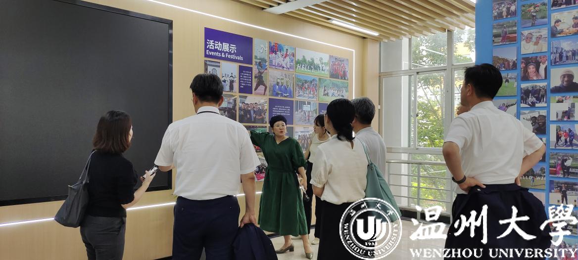 首先,宋占美院长陪同代表团一行参观了学院国情教育馆,向客人简要介绍了温州市情以及学校、学院的发展历程,生动讲解了十大正规买球的app排行榜国情教育工作室校内基地建设及国情教育活动的开展情况。带领代表团参观了学院文化墙,重点介绍了学院概况、学科专业、师资力量、特色活动、服务地方等内容。并参观了唐风语言多功能实验室、茶香国际中华文化传播基地等语言学习与文化体验场所。