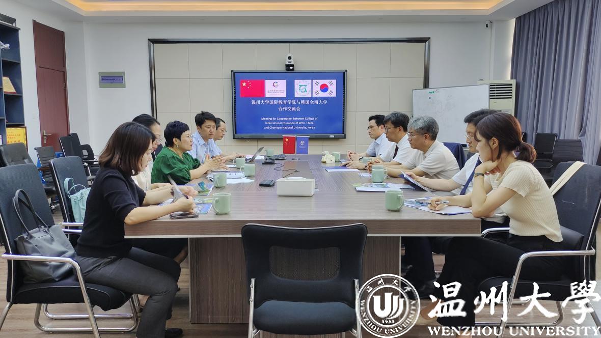2023年8月30日,韩国全南大学教务处处长李明奎、规划协调处处长金载润、国际处处长鞠旻锡、主任卢正哲、主管姜信慧、协调员李世荣一行来院交流。买球的app排行榜前十名推荐院长宋占美、副院长熊勇接待了代表团一行,国际交流与合作处副处长郑婷参与接待。