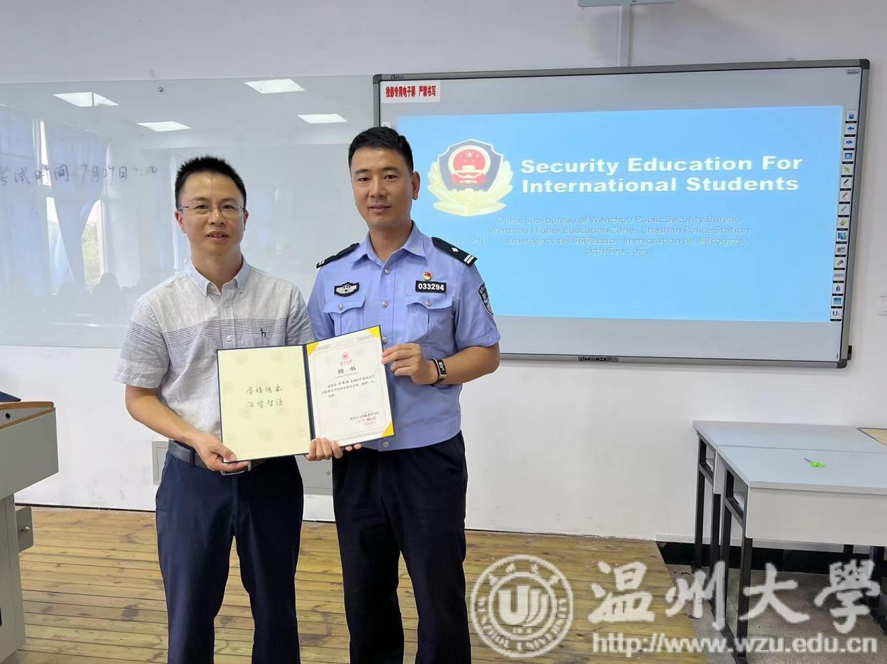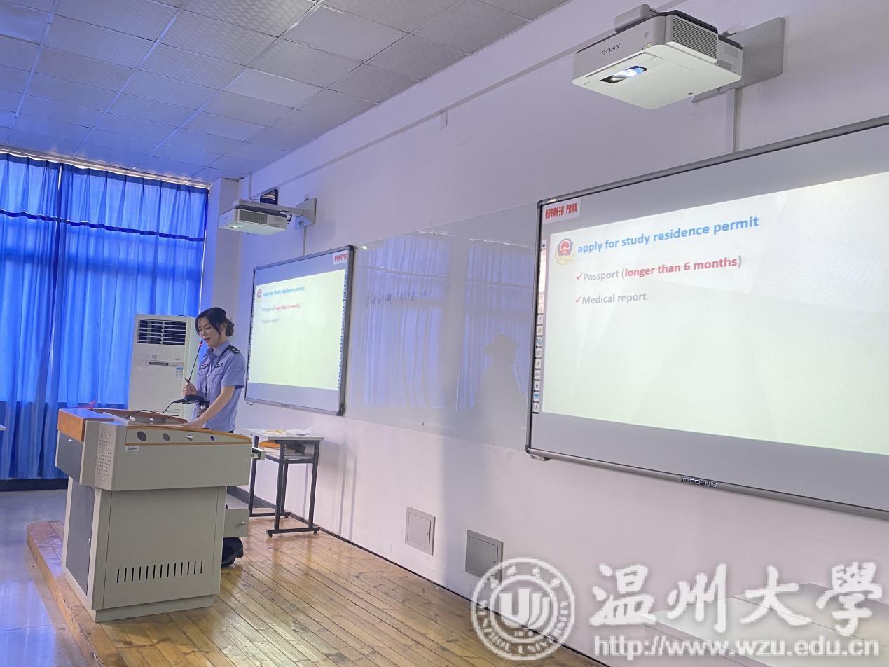 与法同行,安全护航。为切实增强留学生的守法观念和安全意识,9月15日下午,买球官网特邀温州市公安局瓯海区分局茶山派出所陈海敏、胡亦舒警官进行中国法律、安全、禁毒、反诈骗讲座,以及瓯海区公安分局出入境张小雯警官进行签证办理讲解。一个个鲜活的典型案例给留学生们敲响遵纪守法的“警钟”,让守法观念和安全意识更加深入人心。