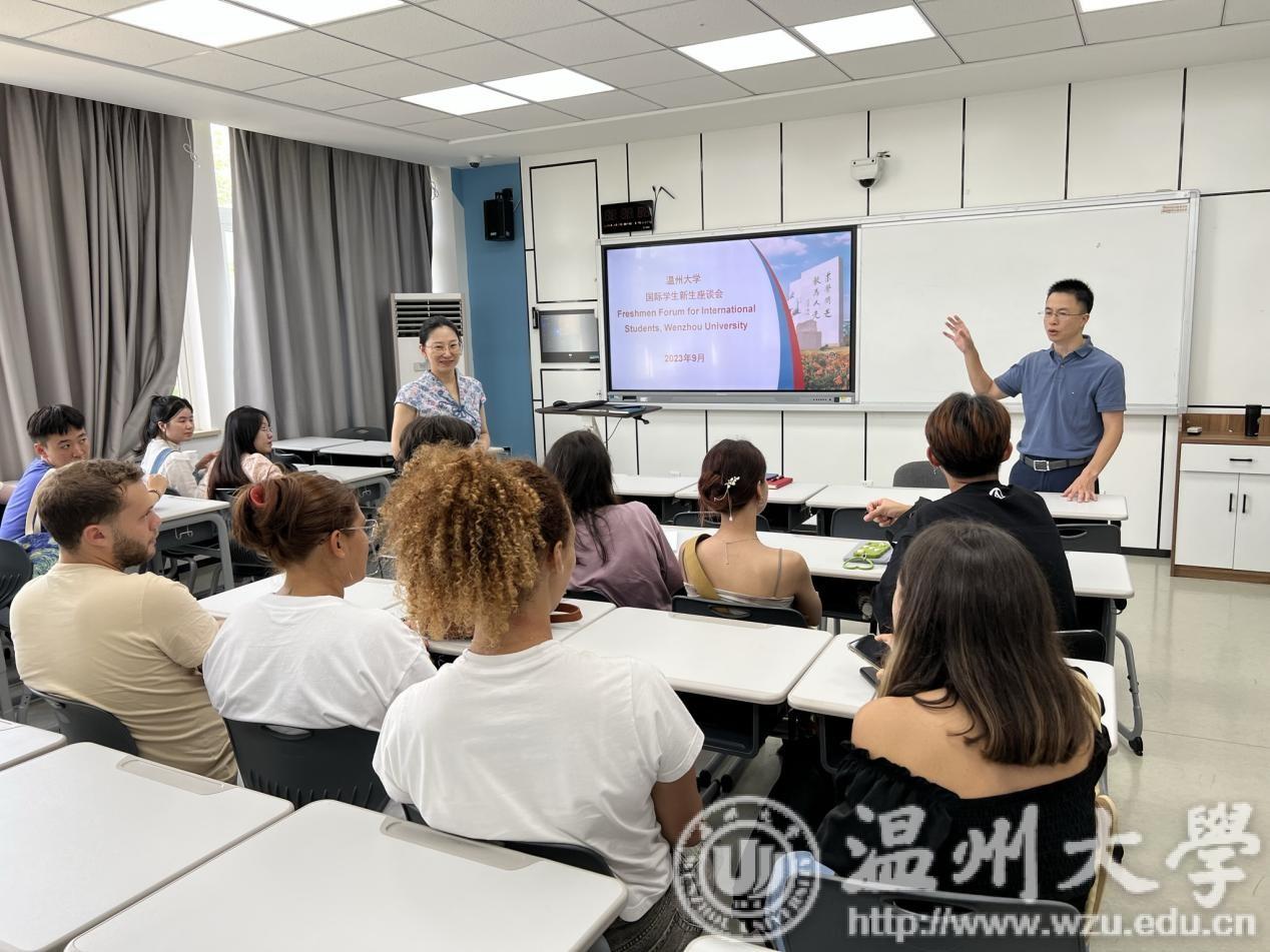 倾听心声,温暖启航。本次新生座谈会主要由学院林爱菊书记、宋占美院长、熊勇副院长、方建晓副书记、学院辅导员及留学生新生参加。座谈会上,留学生们踊跃发言,畅谈入校以来在生活、学习等方面的感受及对留学温大的规划与美好期待。参会教师耐心倾听留学生发言,并对留学生提出的困难与问题进行细致解答,为进一步提升留学生的幸福感全力以赴。