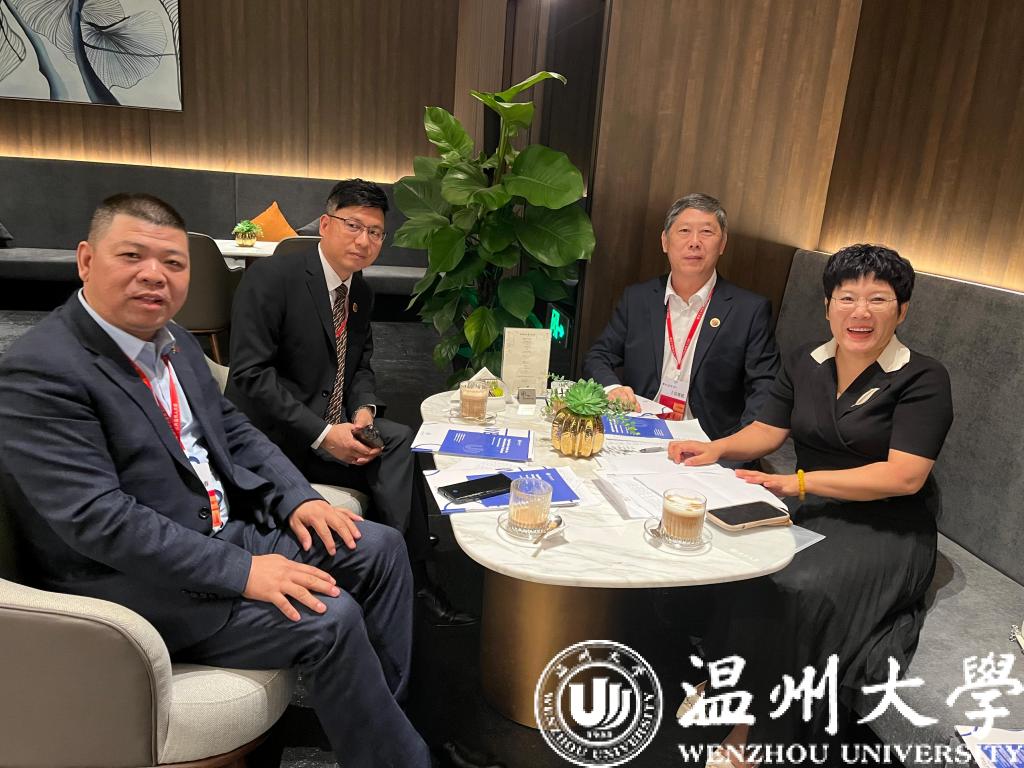 2023年10月14日,世界温州人大会在温州隆重举行。会议间隙,坦桑尼亚浙江商会会长夏赵春、秘鲁浙江总商会执行会长张建英、越南中国商会浙江企业联合会会长缪仁赖、印度尼西亚浙江总商会会长伍晋斌受邀与学院院长宋占美举行合作洽谈交流,买球的app排行榜前十名推荐招生科副科长吴铨铨参与交流。