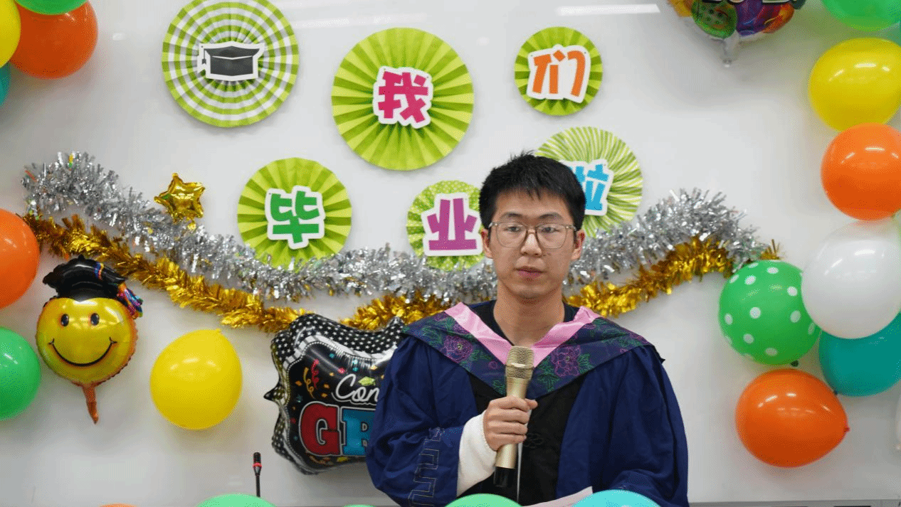 随后,毕业班班主任涂海强老师为同学们送上最美好的祝福。涂老师回顾了自己与毕业生们共度的时光,分享了学生们在学术、实践和生活中的成长和进步。他鼓励毕业生们保持好奇心,勇于探索未知领域,不断提升自己的技能和能力,保持初心,坚守信念,勇攀高峰,实现人生价值。同时,他也鼓励学生们要珍惜同窗情谊,相互扶持,共同前行。在今后的日子里,期待同学们的进步,也期待同学们能够有满满的收获与稳稳的幸福!