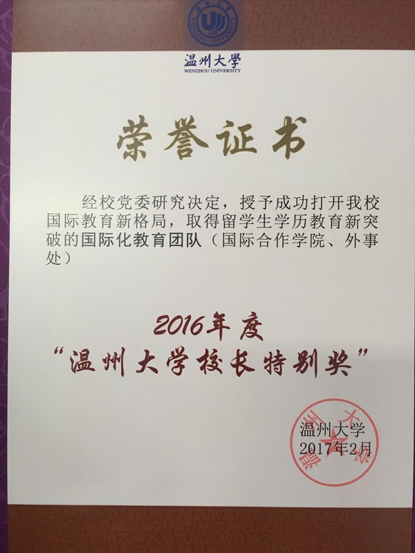 2017年2月19日,在茶山育英大礼堂召开了十大正规买球的app排行榜新学期全校教职工大会。会上,学校授予成功打开我校国际教育新格局,取得留学生学历教育新突破的国际化教育团队——国际合作学院和外事处“十大正规买球的app排行榜2016年度‘十大正规买球的app排行榜校长特别奖’”。