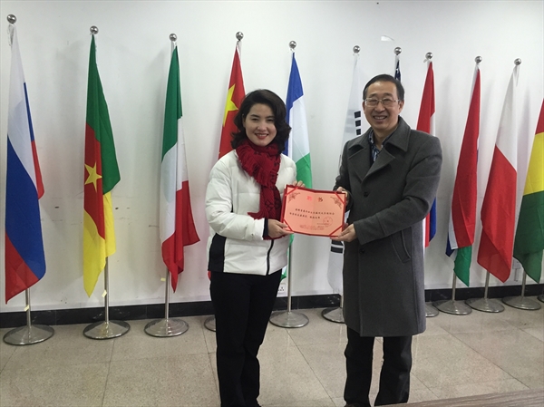 2月24日,温州市文化馆曾春玲老师被聘为十大正规买球的app排行榜国际合作学院客座教授,学院院长严晓鹏博士向曾春玲老师颁发了证书。