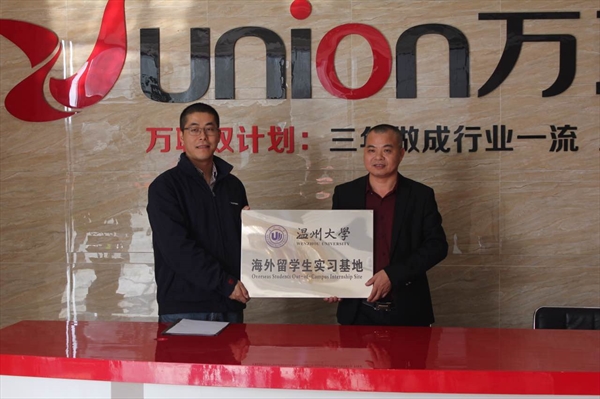 2016年11月17日,十大正规买球的app排行榜国际贸易专业2013级本科学历留学生在国际学院阮骐和赵慈爱老师的带领下前往位于平阳宋桥的浙江万联电器有限公司开展专业见习活动,公司董事长潘联平与副总经理潘琪热情接待了他们。期间,双方还举行了十大正规买球的app排行榜留学生实习基地签约及授牌仪式。平阳电子机械行业协会上官秘书长到场并对十大正规买球的app排行榜和万联电器的校企合作模式给予充分的肯定和殷切的期望。