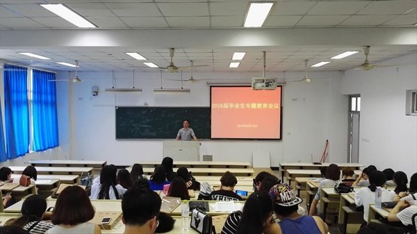 2016年6月16日下午14:00,国际合作学院2016届毕业生专题教育会议在北校3号楼401教室举行,2012级市场营销专业(中丹合作项目)毕业生60余人参加了毕业前夕的专题教育会议。国际合作学院党总支书记朱建平、毕业班班主任、相关辅导员参加会议。