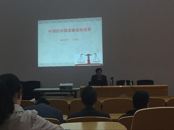 4月6日下午15:00,国际合作学院、生命与环境科学学院、机电工程学院和建筑工程学院这四个学院党总支联合举办教工政治理论学习讲座(政治理论学习中心组学习扩大会),特别邀请了校党委委员、组织部部长方益权作题为《中国法治国家建设的进程》的专题讲座,本次讲座由生命与环境科学学院党总支书记黄文浩主持。