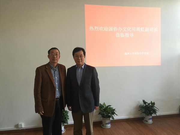 严晓鹏院长向周虹副司长介绍了买球官网作为国侨办华文教育基地,近十年来积极开展华文教育实践与研究的工作情况,具体介绍了“寻根之旅”海外华裔青少年夏令营、优秀华裔青年营、海外华文教师培训班和华侨生学历教育的办学经验和成果,以及开展华文教育研究和世界温州人研究情况。此外,买球官网还一直与海外华文学校和华文教师保持密切联系,积极捐赠汉语教材,关心华文教师的在海外的工作和生活,并为华校和华文教师提供各种后续咨询、服务等实实在在的帮助。