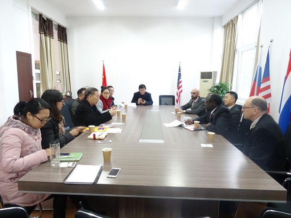 2015年12月17日下午,美国阿巴拉契亚州立大学副校长Jesse Lutabingwa教授,商学院副院长Martin Meznar等一行四人来买球官网就开展中美合作项目进行沟通交流。买球官网领导班子,学院办公室负责人及汉语国际推广教研室主任热情会见了客人。