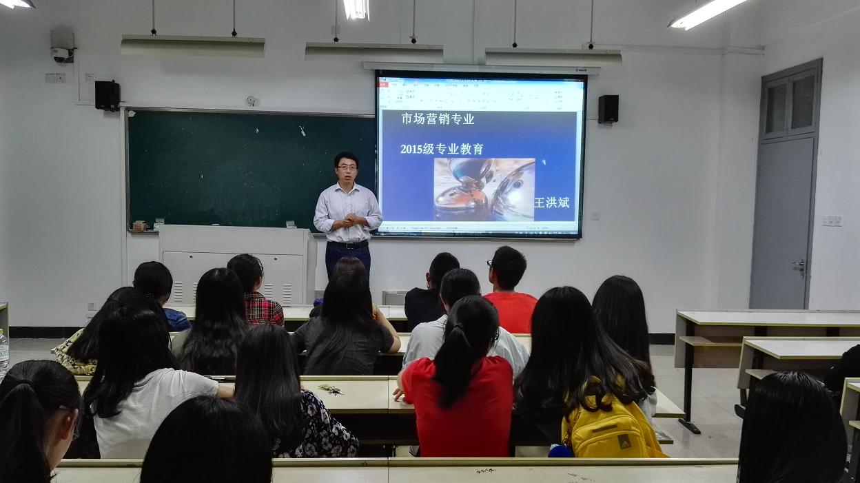 10月8日晚上18点30分,国际合作学院王洪斌博士在北校区3号楼307教室为中丹合作项目市场营销专业全体新生开展专业导读课,买球官网2015级市场营销专业的46位新生共同聆听了王博士的专题解读。