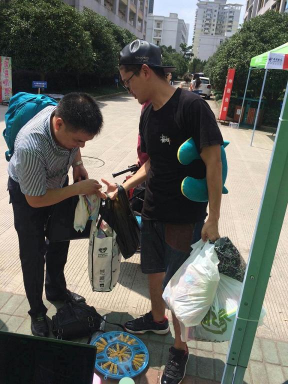 根据学校的统一部署,配合学区的工作安排,买球官网迎新工作有序开展。今年买球官网的新生全部安排在超豪学区E区,上午7点开始,迎新点就陆续挤满了来报到的新生同学,核对录取通知书、报到注册、分发资料、领取钥匙饭卡、疑难解答、行李搬运、送新生到宿舍,现场接待热情有礼,手续办理有条不紊,细致周到的服务工作,获得了新生和家长的一致赞许。