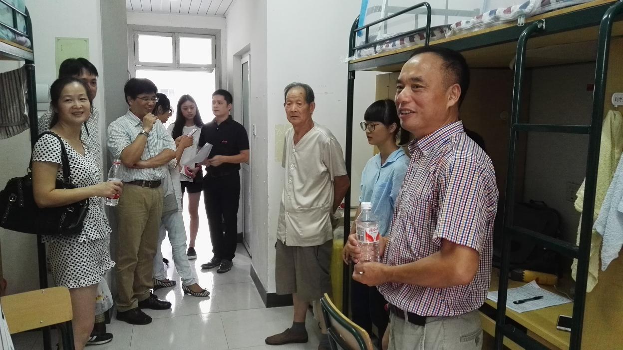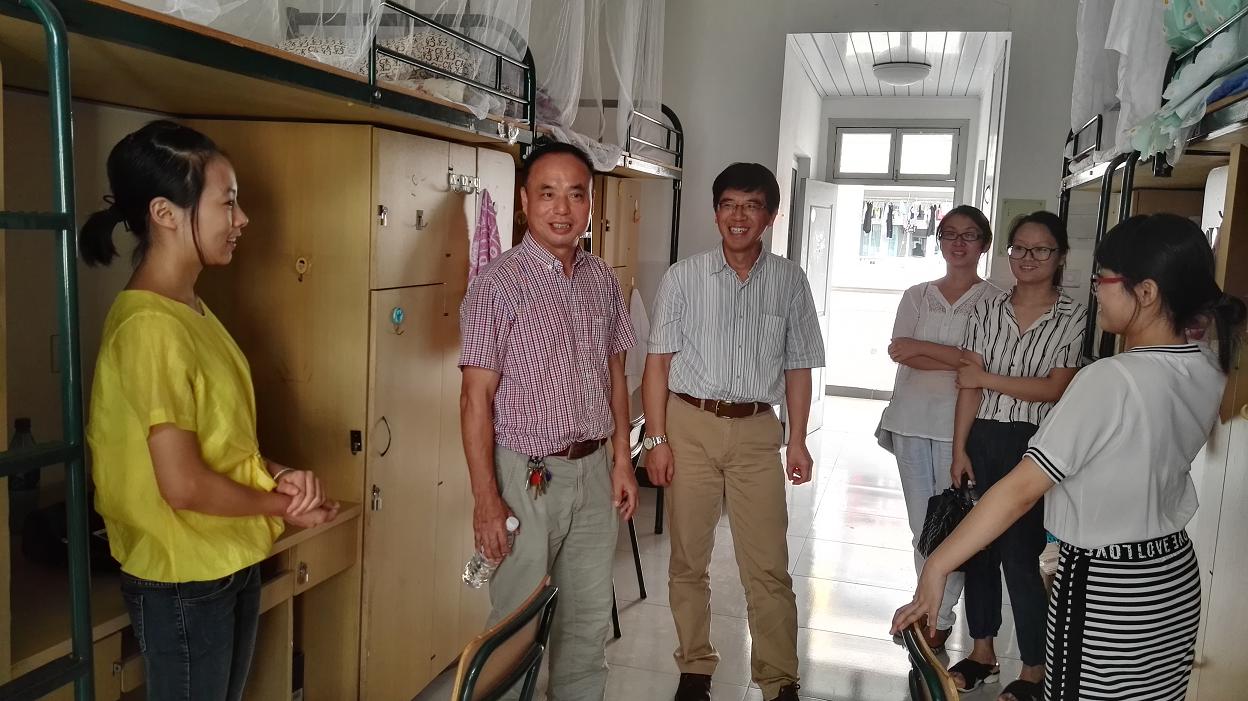 9月8日下午两点,十大正规买球的app排行榜国际合作学院党总支书记朱建平、副院长陈军带领新生班主任和辅导员一起走访买球官网2015级23个新生寝室,看望慰问新生及家长。