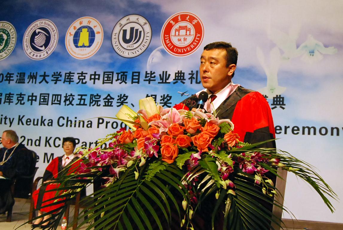 2010年6月29日上午,十大正规买球的app排行榜中美合作库克项目2010届开放式毕业典礼暨库克大学第102届库克中国四校五院金奖、银奖、铜奖颁奖盛典在十大正规买球的app排行榜学院路校区育英大礼堂隆重举行。十大正规买球的app排行榜党委副书记林娟娟教授、副校长薛伟教授、美国库克大学校长Dr.Joseph Burke、学术副校长Dr.Anne Weed、海外学术合作副校长兼中国合作办学项目负责人Dr. Michael T.C. Hwang、副校长Dr.Gary Smith、库克中国项目合作办学四校五院校院长出席,省教育厅外事处吴伯刚先生、库克中国上海办事处工作人员、十大正规买球的app排行榜相关部门、学院领导、库克中国四校五院获奖学生代表、毕业生亲友及部分对库克合作项目感兴趣的市民参加了本次盛大的典礼。典礼由国际合作学院院长严晓鹏主持。